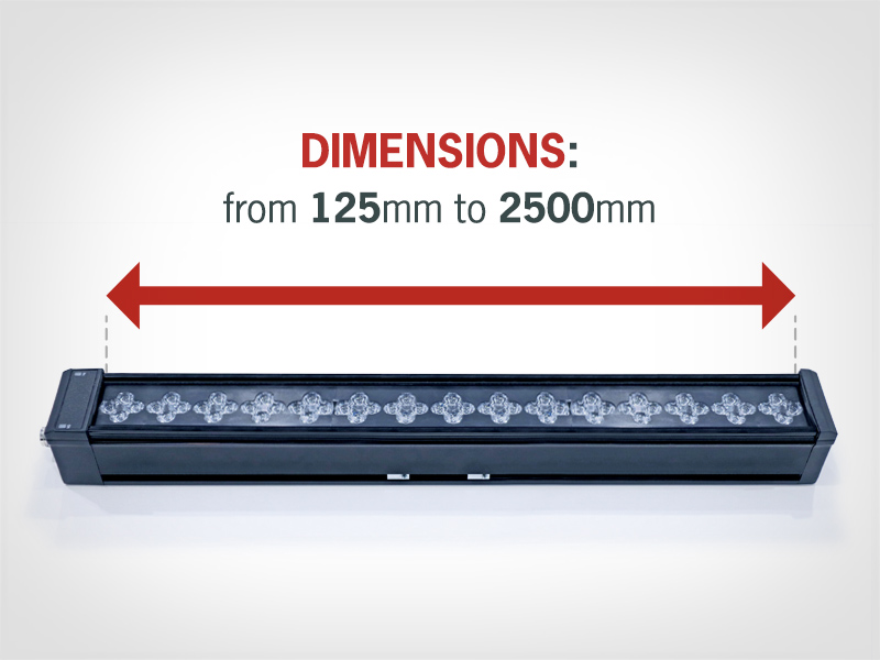 Available in different colours: White (6500K), Red (630nm), IR (850nm), Green (525nm), Blue (470nm) in sizes from 125mm – 2500mm.
