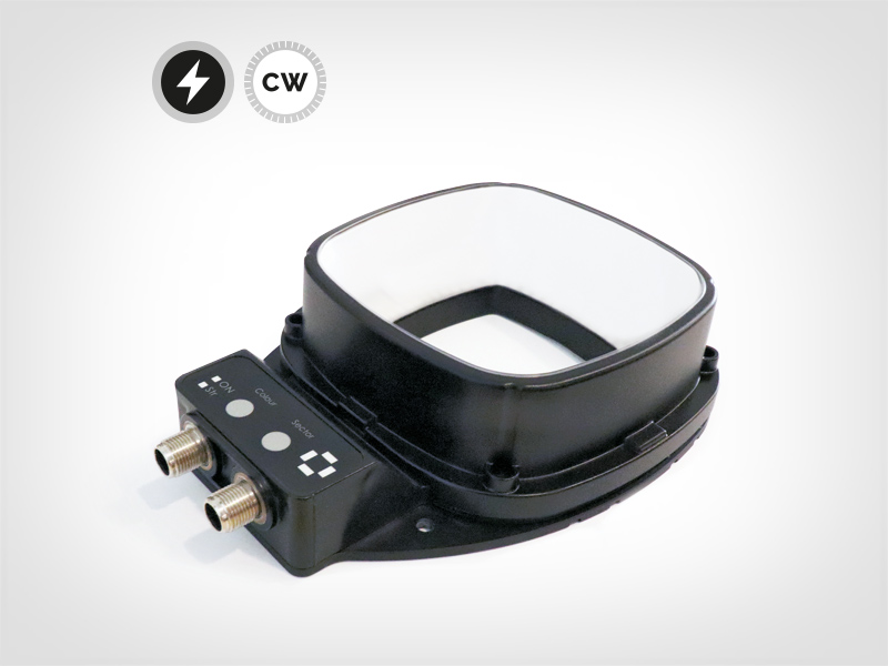 The MR-Dark Field (DKF) is made up of our bi-colour LED Modular Ringlight (available in 2 sets of colours and 2 dimensions) and a dark field reflector. The Modular Ringlight and its accessories have been designed with tough production environments in mind: IP65 as standard, overdrive embedded, equipped with a simple remote control capability (selection of colours and quadrants).